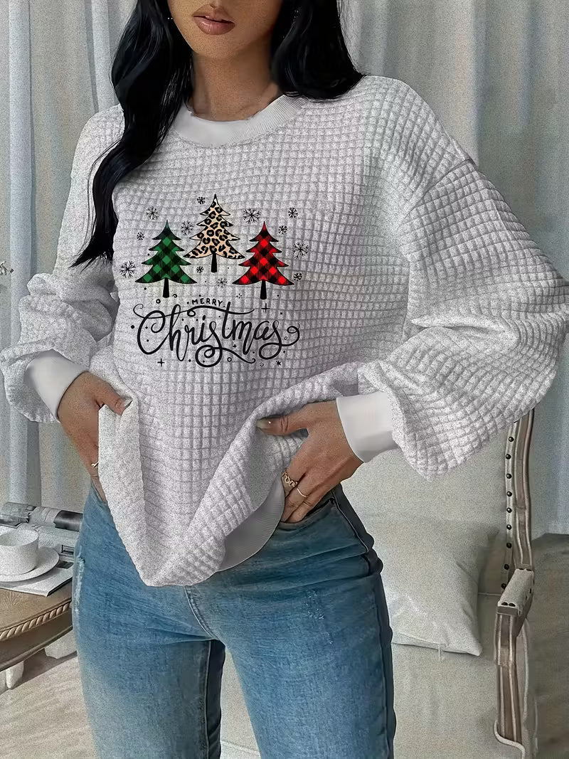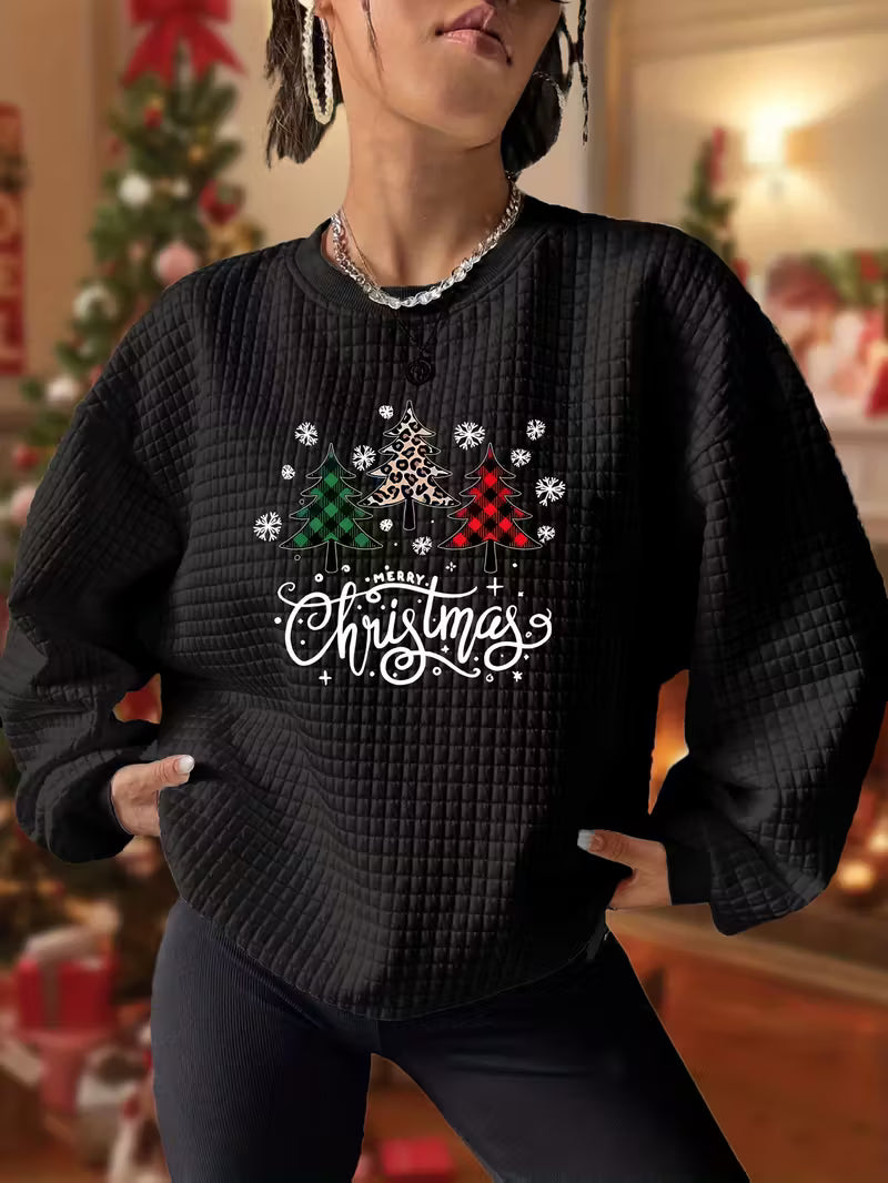 New Christmas Tree Printed Quilted Jacquard Round Neck Sweatshirt